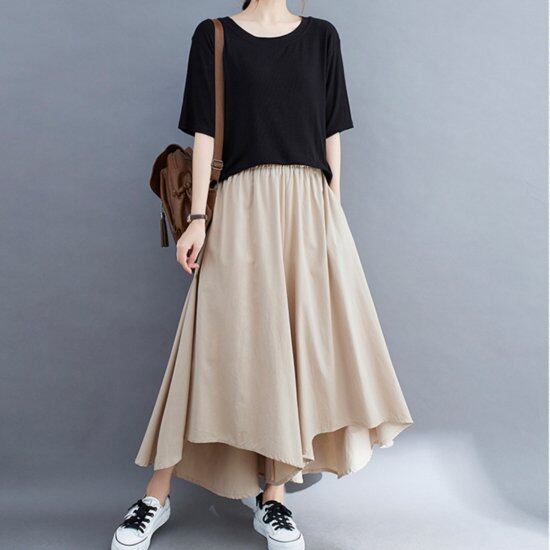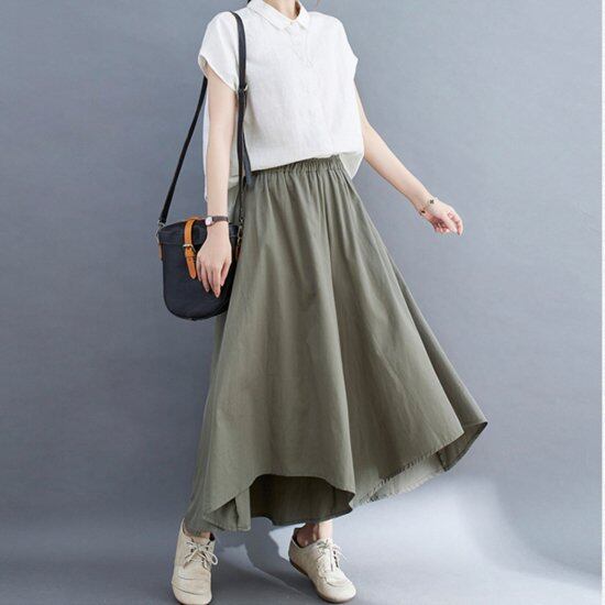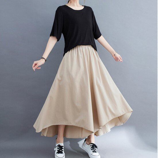 Aライン スカート ロング 大きいサイズ レディース 婦人服 膝下 フレア 着痩せ 体型カバー 大人 シンプル 秋 冬 2XL 〜 7XL 30代 40代 50代