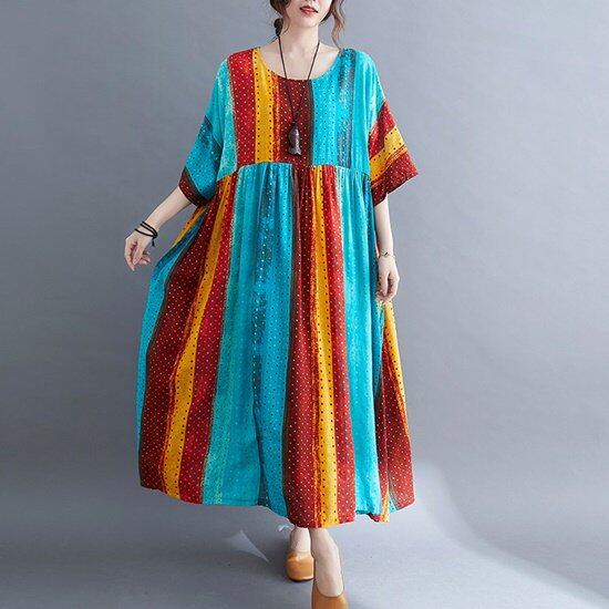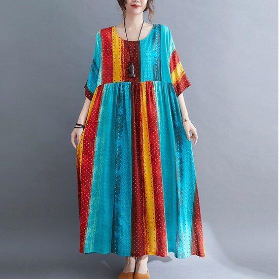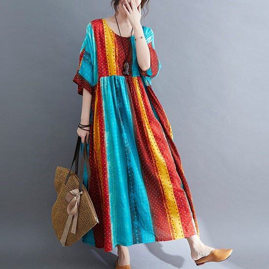 様々なカラーから選べる!ロングワンピースです。 カラフルなワンピースで色合いもきれいな商品。 ゆったり着用できます。 【カラー】 ダークブルー、レッド、ブルーストライプ、オレンジストライプ 【素材】 綿 【サイズ】 着丈:120cm バスト:142cm ※測り方によって1-2cmの誤差が生じる場合が御座います。 ※モニターの発色により実際と異なる場合があります。 tyf-96 ワンピース ワンピースドレス 半袖 ロング レディース レディースファッション 春 夏 ワンピ 大人カジュアル おしゃれ ロングワンピ ラウンドネック スカート プリント カラフル 体型カバー こちらの商品は海外からの【お取り寄せ商品】となります。 ご注文確定後(入金確認後)、海外よりお取り寄せさせていただきます。 お届けまで3週間前後お時間をいただいております。 数あるショップの中からご覧いただきありがとうございます。 以下のショップ注意事項をご確認いただき、ご購入をお願い致します。 ※注意事項※ ●トラブル防止の為、遠慮なくメールにてご質問下さい。 ●当店の商品は海外からのお取り寄せ商品になります。 ●カラーやイメージが違う、実寸が違う等を気にされる方のクレーム、返品、交換は一切お受けしておりません。 そのような方のご購入は予めご遠慮下さい(初期不良に関しては返品交換の対応をさせていただきます)。 ●海外製品は多少の縫製ミス、糸のほつれ、細かい不具合、多少の色の違い、イメージ違い等がごく稀にございます。 検品は徹底しておりますので、ご理解の上ご購入をお願い致します。 ●お届けまで注文確定後3週間程度となります。 ●ご注文を頂いても海外のメーカーにて完売の場合は、商品をお届けする事ができませんのでキャンセルとさせていただく場合がございます。 ●お客様の個人情報は発送以外に使用することは一切ございません。 ●ご注文確定後のお客様都合によるキャンセル、サイズ・カラーの変更はお受けすることが出来ません。