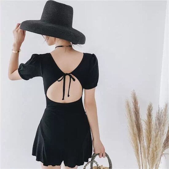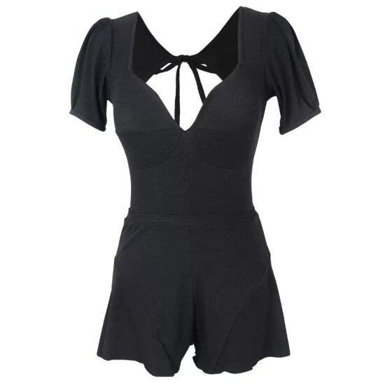 水着 ワンピース水着 レディース ノースリーブ スポーツ水着 スポーツ フィットネス ヨガ カジュアル 旅行 温泉 プール 海 リゾート レトロ キュート お洒落 可愛い 10代 20代 ブラック 黒