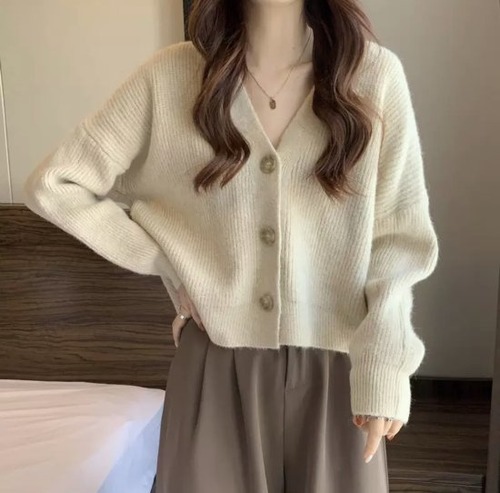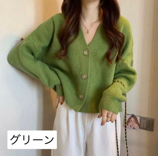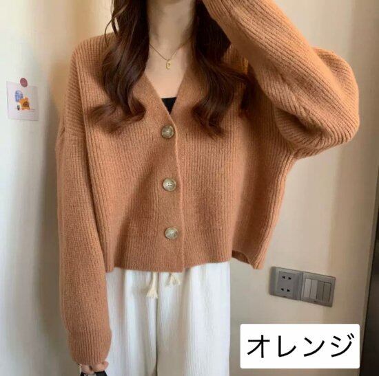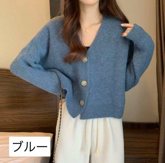 カーディガン レディース 無地 ニット アウター シンプル カジュアル ゆったり 大人 可愛い 前開き ボタン Vネック ショート丈 羽織り 長袖 秋冬 オーバーサイズ