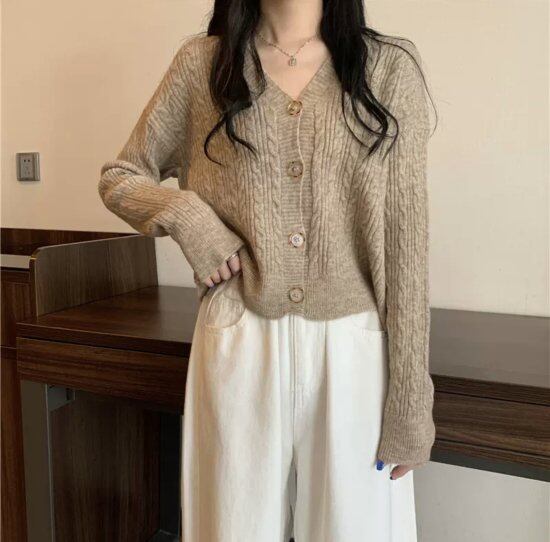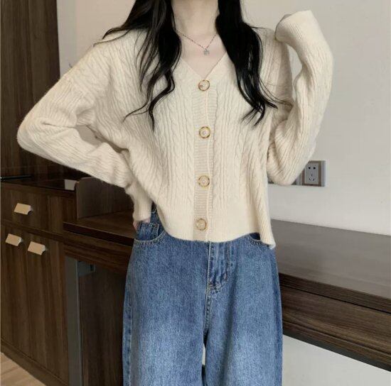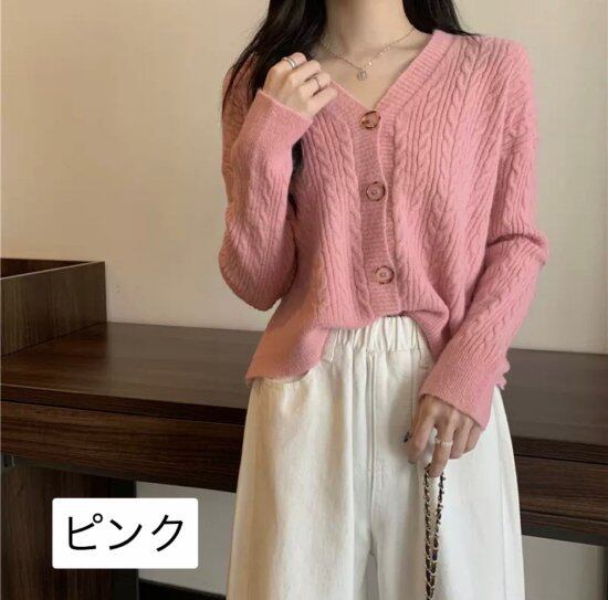 カーディガン レディース 無地 ニット アウター シンプル カジュアル ゆったり 大人 可愛い 前開き ボタン Vネック ショート丈 羽織り 長袖 秋冬 オーバーサイズ