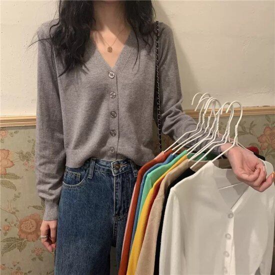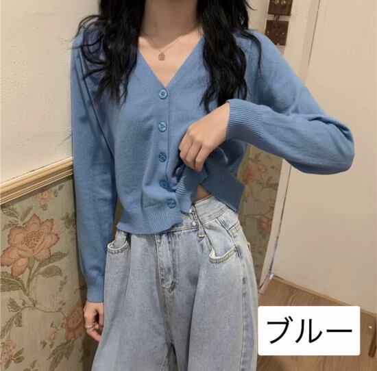 カーディガン レディース 無地 ニット アウター シンプル カジュアル ゆったり 大人 可愛い 前開き ボタン Vネック ショート丈 羽織り 長袖 秋冬 オーバーサイズ
