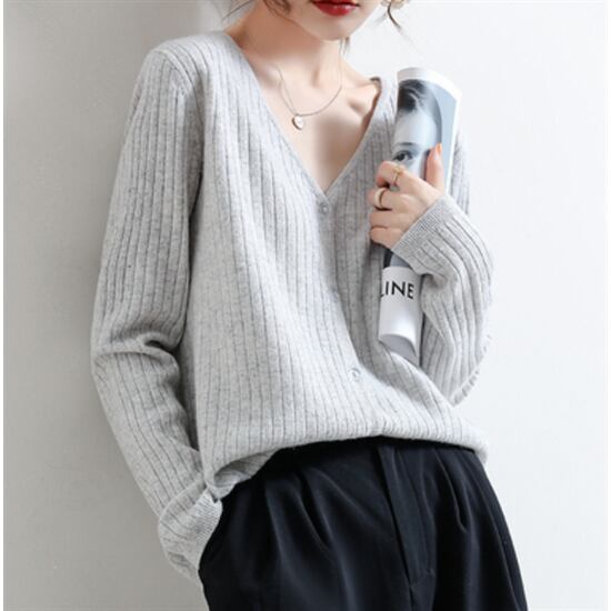 カーディガン レディース 無地 ニット アウター シンプル カジュアル ゆったり 大人 可愛い 前開き ボタン Vネック ショート丈 羽織り 長袖 秋冬 オーバーサイズ