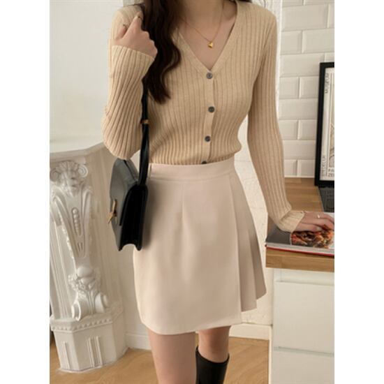 カーディガン スカート セット セーター 羽織り モノトーン プリーツスカート ミニスカート セットアップ 2点セット 大きいサイズ ゆったり ビックシルエット 通学