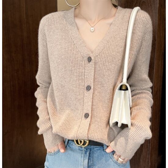 カーディガン レディース 無地 ニット アウター シンプル カジュアル ゆったり 大人 可愛い 前開き ボタン Vネック ショート丈 羽織り 長袖 秋冬 オーバーサイズ