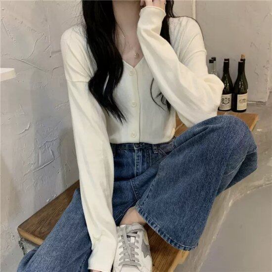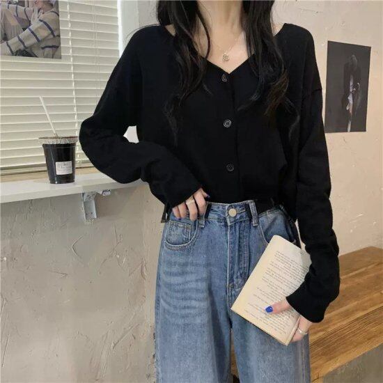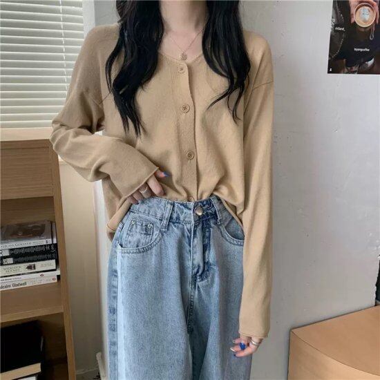 カーディガン レディース 無地 ニット アウター シンプル カジュアル ゆったり 大人 可愛い 前開き ボタン Vネック ショート丈 羽織り 長袖 秋冬 オーバーサイズ