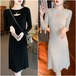 ワンピース ニットドレス レディース ガールズ エレガント 長袖 フリース あったか ミディ丈 秋冬 新作 通勤 キレイ レース ラウンドネック