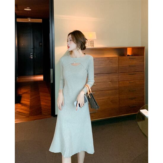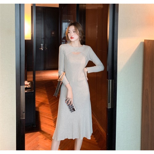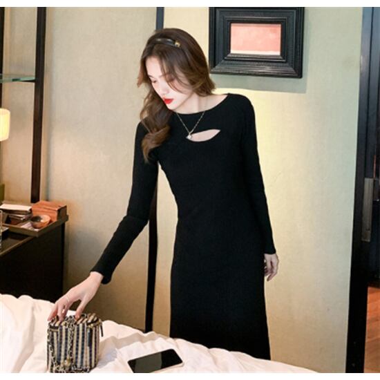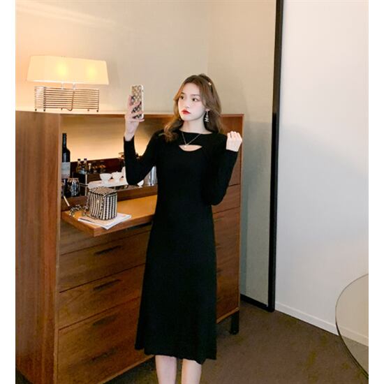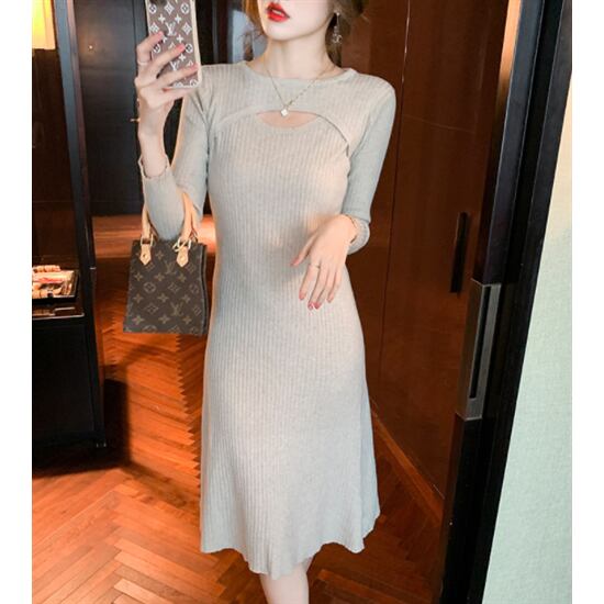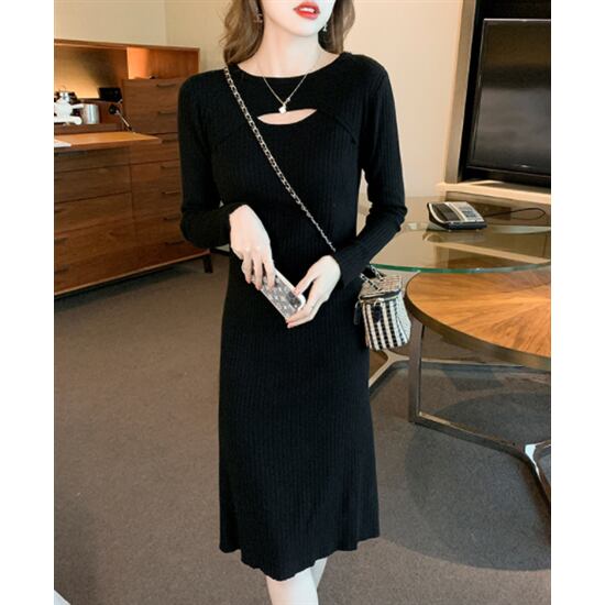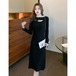 ワンピース ニットドレス レディース ガールズ カジュアル 新作 長袖 プリーツ ベルベット エレガント 通勤 ミディスカート ハーフタートルネック