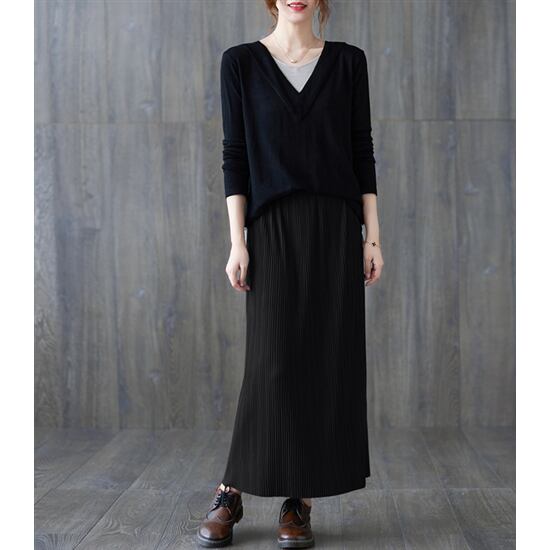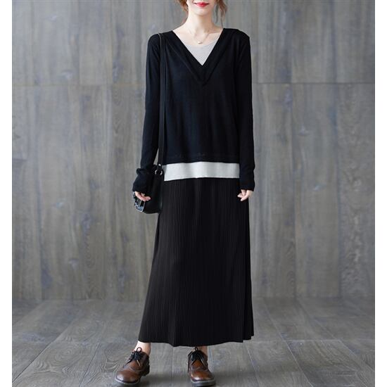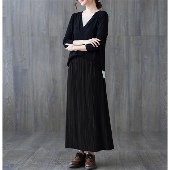 ワンピース ニットドレス レディース ガールズ カジュアル 新作 長袖 プリーツ ベルベット エレガント 通勤 ミディスカート ハーフタートルネック