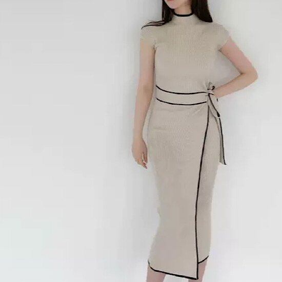 ワンピース ニットドレス レディース ガールズ カジュアル 新作 長袖 プリーツ ベルベット エレガント 通勤 ミディスカート ハーフタートルネック