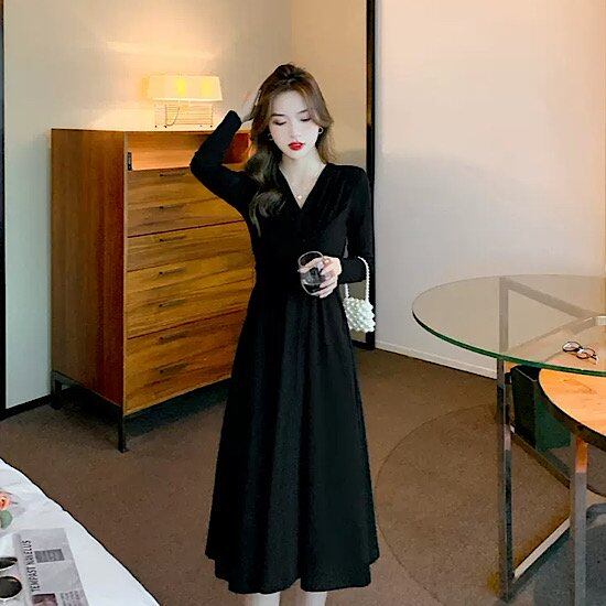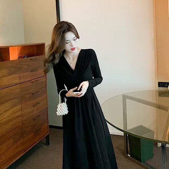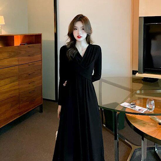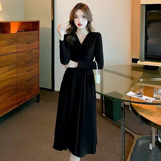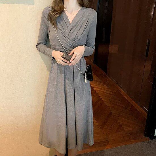 ワンピース ニットドレス レディース ガールズ カジュアル 新作 長袖 プリーツ ベルベット エレガント 通勤 ミディスカート ハーフタートルネック