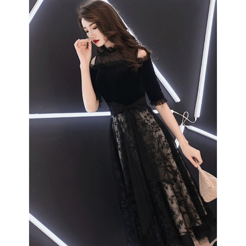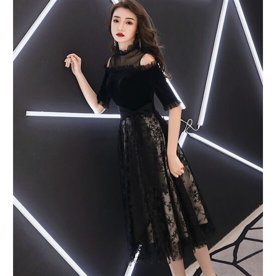 ドレス フォーマル ワンピース ミニワンピース 膝上 結婚式 披露宴 二次会 バルーン袖 黒 ブラック 30代 40代 華やか 大きサイズ 着やせ スイート お呼ばれ パーティドレス