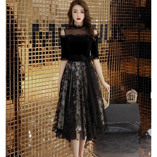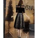 ドレス フォーマル ワンピース 膝上 結婚式 披露宴 二次会 黒 ブラック 30代 40代 発表会 華やか シフォン 大きサイズ 着やせ スイート エレガント お呼ばれ パーティドレス