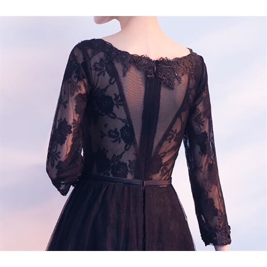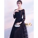ドレス フォーマル ワンピース ミニワンピース 膝上 結婚式 披露宴 二次会 バルーン袖 黒 ブラック 30代 40代 華やか 大きサイズ 着やせ スイート お呼ばれ パーティドレス