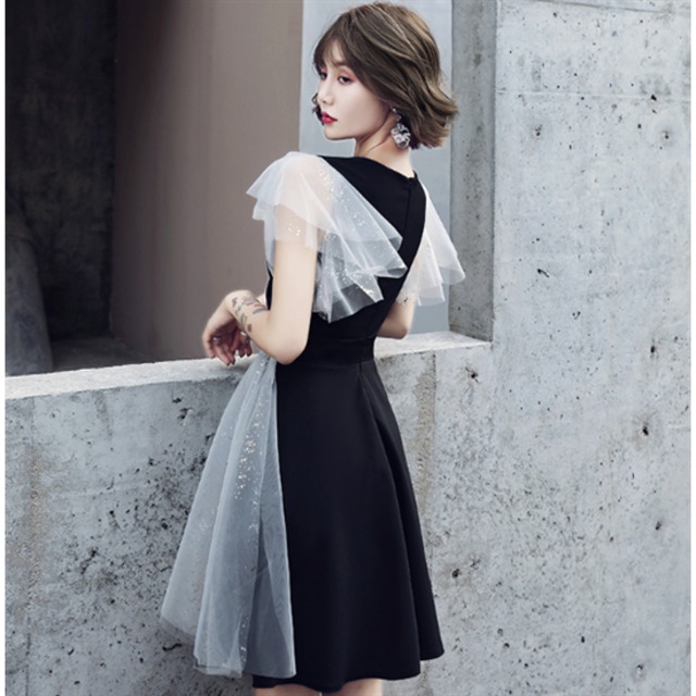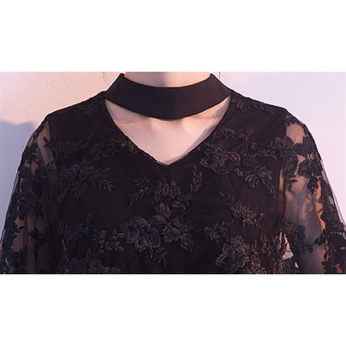演奏会ドレス ロングドレス 大きいサイズ イブニングドレス 2XL 3XL フェミニン 個性的 Vネック エレガント ショートスカート スパンコール フェミニン 袖あり 演奏会ドレス ロングドレス