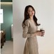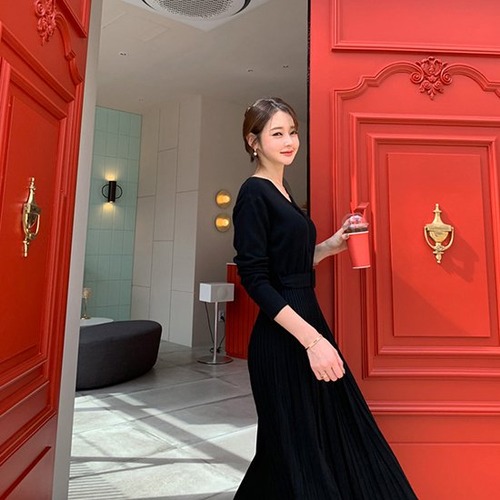 ワンピース ニットドレス レディース ガールズ カジュアル 新作 長袖 プリーツ ベルベット エレガント 通勤 ミディスカート ハーフタートルネック