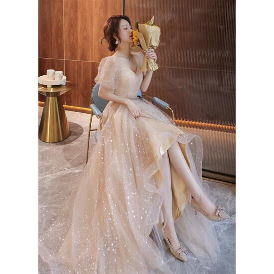 演奏会ドレス ロングドレス 大きいサイズ 2XL 3XL 小さいサイズ 半袖 チュチュスカート ハイウエスト 花柄 ロングスカート エレガント ランタンスリーブ 体型カバー 演奏会ドレス Aライン