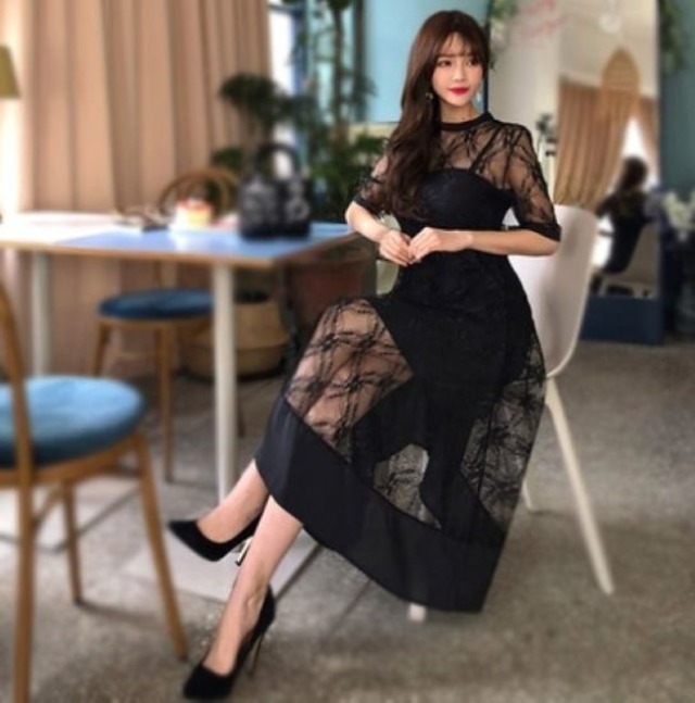 結婚式ドレス パーティードレス ワンピース レース ミモレ丈 結婚式 二次会 謝恩会 半袖 単色 シースルー 女性らしい 可愛い ブラック ピンクベージュ レディース 大人っぽい エレガント ドレス