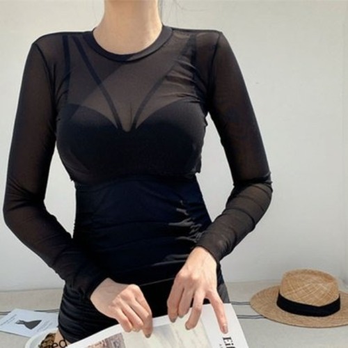 水着 ビキニ 2WAY UVケア 透け感 大人 可愛い シンプル ラメ トップス くびれ レディース 女性 春 夏 海 プール 体型カバー 着痩せ オルチャン 美シルエット 美脚