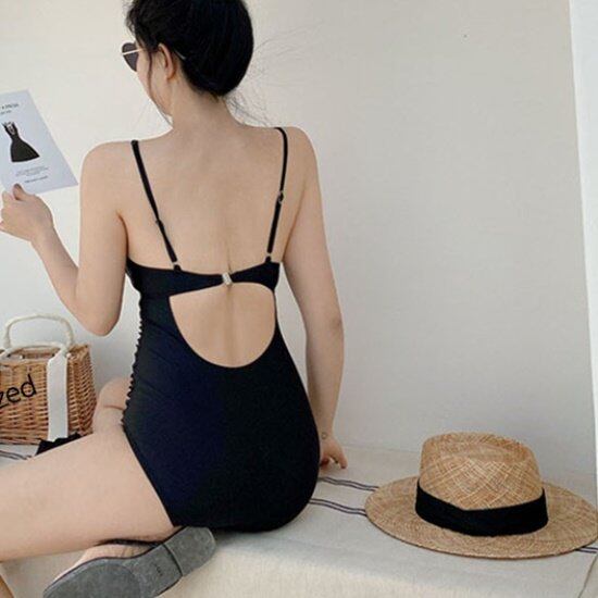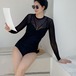 水着 ワンピース水着 レディース ノースリーブ スポーツ水着 スポーツ フィットネス ヨガ カジュアル 旅行 温泉 プール 海 リゾート レトロ キュート お洒落 可愛い 10代 20代 ブラック 黒
