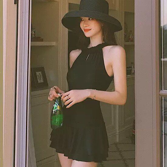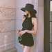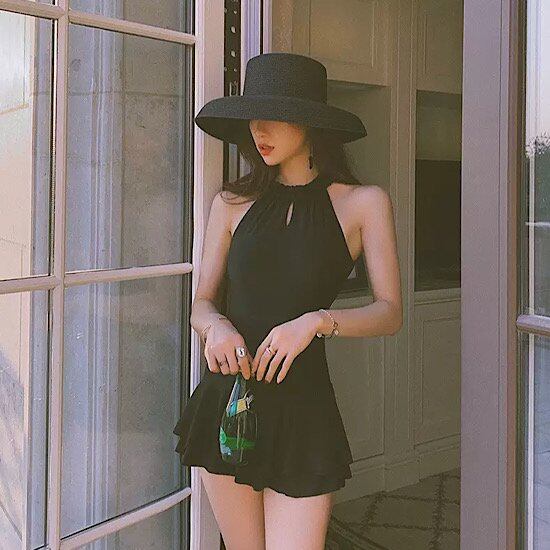 水着 ワンピース水着 レディース ノースリーブ スポーツ水着 スポーツ フィットネス ヨガ カジュアル 旅行 温泉 プール 海 リゾート レトロ キュート お洒落 可愛い 10代 20代 ブラック 黒
