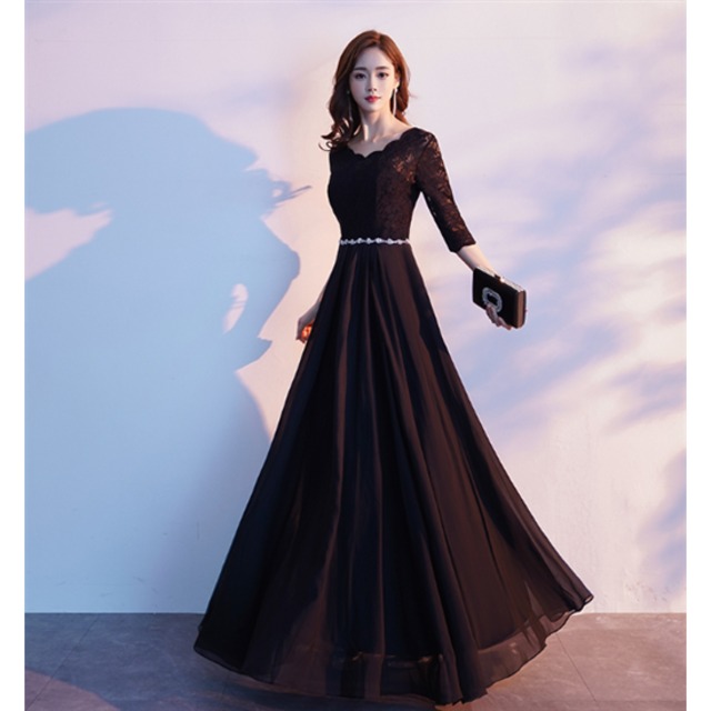 演奏会ドレス ロングドレス 大きいサイズ XL 2XL イブニングドレス 半袖 エレガント Vネック お呼ばれ フォーマル レース ロングスカート ワンピース Aラインスカート 演奏会ドレス