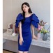 ドレス フォーマル ワンピース ミニワンピース 膝上 結婚式 披露宴 二次会 バルーン袖 黒 ブラック 30代 40代 華やか 大きサイズ 着やせ スイート お呼ばれ パーティドレス