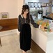 ワンピース ニットドレス レディース ガールズ エレガント 長袖 フリース あったか ミディ丈 秋冬 新作 通勤 キレイ レース ラウンドネック
