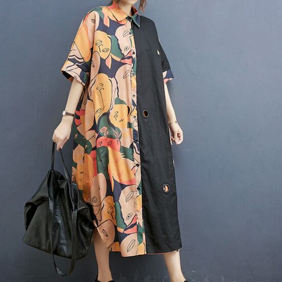 大胆に柄がプリントされた個性派ワンピース♪ きちんと感のあるシャツワンピースでも、華やかな柄なら退屈にならない! 体型カバー力も抜群で、優秀な一枚です☆ 【素材】 ナイロン 【サイズ】 L、XL L 着丈:114cm バスト:122cm 袖丈:16cm XL 着丈:115cm バスト:126cm 袖丈:17cm ※測り方によって1-2cmの誤差が生じる場合が御座います。 ※モニターの発色により実際と異なる場合があります。 jfk-7 ワンピース レディース 夏新作 ロング 五分袖 大きいサイズ アシンメトリー ロングワンピ シャツワンピ プリント ワンピース レディース 夏新作 ロング 五分袖 大きいサイズ アシンメトリー こちらの商品は海外からの【お取り寄せ商品】となります。 ご注文確定後(入金確認後)、海外よりお取り寄せさせていただきます。 お届けまで3週間前後お時間をいただいております。 数あるショップの中からご覧いただきありがとうございます。 以下のショップ注意事項をご確認いただき、ご購入をお願い致します。 ※注意事項※ ●トラブル防止の為、遠慮なくメールにてご質問下さい。 ●当店の商品は海外からのお取り寄せ商品になります。 ●カラーやイメージが違う、実寸が違う等を気にされる方のクレーム、返品、交換は一切お受けしておりません。 そのような方のご購入は予めご遠慮下さい(初期不良に関しては返品交換の対応をさせていただきます)。 ●海外製品は多少の縫製ミス、糸のほつれ、細かい不具合、多少の色の違い、イメージ違い等がごく稀にございます。 検品は徹底しておりますので、ご理解の上ご購入をお願い致します。 ●お届けまで注文確定後3週間程度となります。 ●ご注文を頂いても海外のメーカーにて完売の場合は、商品をお届けする事ができませんのでキャンセルとさせていただく場合がございます。 ●お客様の個人情報は発送以外に使用することは一切ございません。 ●ご注文確定後のお客様都合によるキャンセル、サイズ・カラーの変更はお受けすることが出来ません。