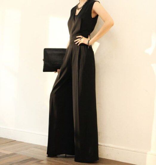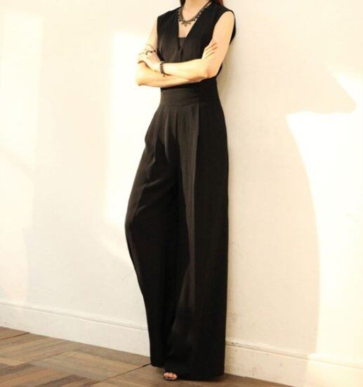 パンツドレス レディース ジャンプスーツ オールインワン ホルターネック ワイドパンツ ノースリーブ ハイウエスト 黒 ブラック きれいめ エレガント スタイリッシュ お呼ばれ フォーマル 披露宴