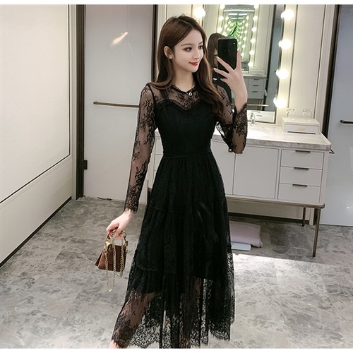 ドレス ロング パーティー お呼ばれ 結婚式 二次会 披露宴 お食事会 レース 刺しゅう 衣装 大人 ドレス 大きいサイズ ドレス 袖付き ワンピース エレガント ドレス イブニングドレス 結婚式
