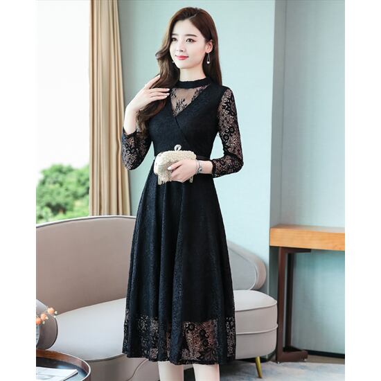 ドレス ロング パーティー お呼ばれ 結婚式 二次会 披露宴 お食事会 レース 刺しゅう 衣装 大人 ドレス 大きいサイズ ドレス 袖付き ワンピース エレガント ドレス イブニングドレス 結婚式