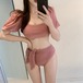 水着 ビキニ 2WAY UVケア 透け感 大人 可愛い シンプル ラメ トップス くびれ レディース 女性 春 夏 海 プール 体型カバー 着痩せ オルチャン 美シルエット 美脚
