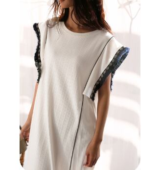 ワンピース ニットドレス レディース ガールズ エレガント 長袖 フリース あったか ミディ丈 秋冬 新作 通勤 キレイ レース ラウンドネック
