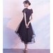 ワンピース ドレス ミドル丈 バイカラー 半袖 袖あり フレンチスリーブ ビーズ刺しゅう モノトーン 星柄 シフォン オーガンジー フレアスカート Aライン フェミニン 発表会 演奏会 大きいサイズ