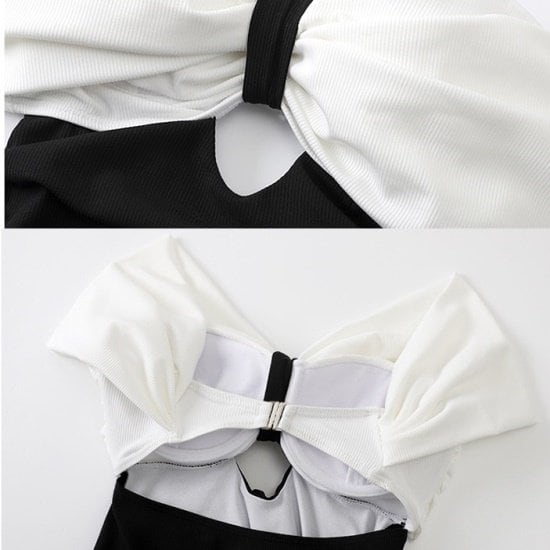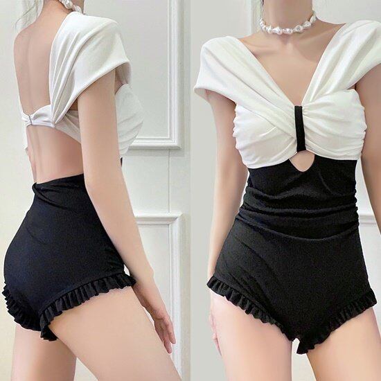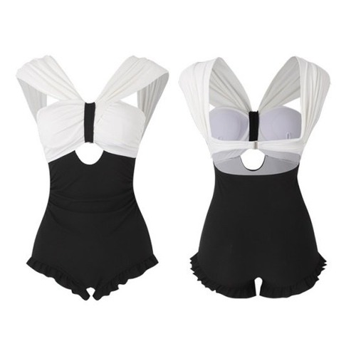 水着 ワンピース水着 レディース ノースリーブ スポーツ水着 スポーツ フィットネス ヨガ カジュアル 旅行 温泉 プール 海 リゾート レトロ キュート お洒落 可愛い 10代 20代 ブラック 黒