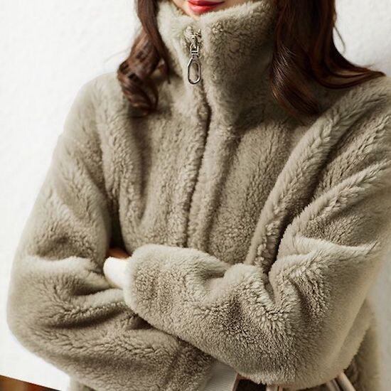 ニット ジャケット 長袖 ジップアップ 前あき 秋冬レディース モコモコ 羽織り ルーズフィット 大きいサイズ 着やせ 韓国 ゆったり あったかい ロング丈 アウター 通学