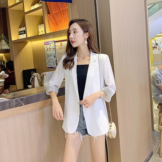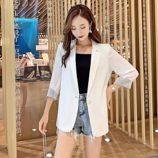 さらっと着れるサマージャケット! 袖口デザインがおしゃれで可愛い♪ カジュアルにもきれいめにも合わせやすいアイテムです◎ 【カラー】 ホワイト、ブラック 【素材】 ポリエステル 【サイズ】 S、M、L、XL S 着丈:64cm バスト:88cm 袖丈:39.7cm 肩幅:36cm M 着丈:66cm バスト:92m 袖丈:41cm 肩幅:37cm L 着丈:68cm バスト:96cm 袖丈:42.2cm 肩幅:38.2cm XL 着丈:70cm バスト:100cm 袖丈:43.5cm 肩幅:39.4cm ※測り方によって1-2cmの誤差が生じる場合が御座います。 ※モニターの発色により実際と異なる場合があります。 dhj-36 サマージャケット レディース テーラードジャケット 夏 薄手 涼しい カジュアル シンプル オフィス 通勤 きれいめ スーツ 七分袖 サマージャケット レディース テーラードジャケット 夏 薄手 こちらの商品は海外からの【お取り寄せ商品】となります。 ご注文確定後(入金確認後)、海外よりお取り寄せさせていただきます。 お届けまで3週間前後お時間をいただいております。 数あるショップの中からご覧いただきありがとうございます。 以下のショップ注意事項をご確認いただき、ご購入をお願い致します。 ※注意事項※ ●トラブル防止の為、遠慮なくメールにてご質問下さい。 ●当店の商品は海外からのお取り寄せ商品になります。 ●カラーやイメージが違う、実寸が違う等を気にされる方のクレーム、返品、交換は一切お受けしておりません。 そのような方のご購入は予めご遠慮下さい(初期不良に関しては返品交換の対応をさせていただきます)。 ●海外製品は多少の縫製ミス、糸のほつれ、細かい不具合、多少の色の違い、イメージ違い等がごく稀にございます。 検品は徹底しておりますので、ご理解の上ご購入をお願い致します。 ●お届けまで注文確定後3週間程度となります。 ●ご注文を頂いても海外のメーカーにて完売の場合は、商品をお届けする事ができませんのでキャンセルとさせていただく場合がございます。 ●お客様の個人情報は発送以外に使用することは一切ございません。 ●ご注文確定後のお客様都合によるキャンセル、サイズ・カラーの変更はお受けすることが出来ません。