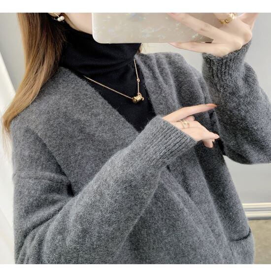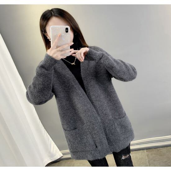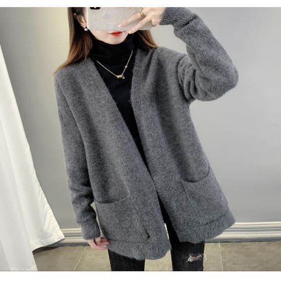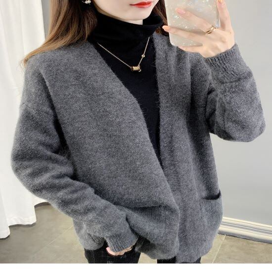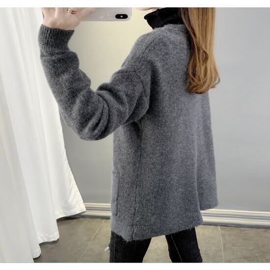 ニット ジャケット 長袖 ジップアップ 前あき 秋冬レディース モコモコ 羽織り ルーズフィット 大きいサイズ 着やせ 韓国 ゆったり あったかい ロング丈 アウター 通学