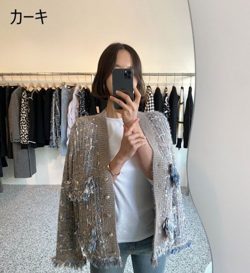 カジュアルにもきれいめにも活躍するツイードカーディガン。 ボタンがパールなので上品に着こなすことができるアイテム。 ブラウスに合わせてきれいめにも、ニットやカットソーに合わせてカジュアルにも。 【カラー】 ブラック、カーキ 【サイズ】 ワンサイズ 着丈:56cm バスト:100cm 肩幅:44cm 袖丈:53cm ※測り方によって1-2cmの誤差が生じる場合が御座います。 ※モニターの発色により実際と異なる場合があります。 hhh-147 ツイードカーディガン カーディガン レディース ツイードニットカーディガン フリンジ 長袖 トップス 羽織り おしゃれ ゆったり 上品 かわいい エレガント 韓国 パールボタン デート エレガント こちらの商品は海外からの【お取り寄せ商品】となります。 ご注文確定後(入金確認後)、海外よりお取り寄せさせていただきます。 お届けまで3週間前後お時間をいただいております。 数あるショップの中からご覧いただきありがとうございます。 以下のショップ注意事項をご確認いただき、ご購入をお願い致します。 ※注意事項※ ●トラブル防止の為、遠慮なくメールにてご質問下さい。 ●当店の商品は海外からのお取り寄せ商品になります。 ●カラーやイメージが違う、実寸が違う等を気にされる方のクレーム、返品、交換は一切お受けしておりません。 そのような方のご購入は予めご遠慮下さい(初期不良に関しては返品交換の対応をさせていただきます)。 ●海外製品は多少の縫製ミス、糸のほつれ、細かい不具合、多少の色の違い、イメージ違い等がごく稀にございます。 検品は徹底しておりますので、ご理解の上ご購入をお願い致します。 ●お届けまで注文確定後3週間程度となります。 ●ご注文を頂いても海外のメーカーにて完売の場合は、商品をお届けする事ができませんのでキャンセルとさせていただく場合がございます。 ●お客様の個人情報は発送以外に使用することは一切ございません。 ●ご注文確定後のお客様都合によるキャンセル、サイズ・カラーの変更はお受けすることが出来ません。