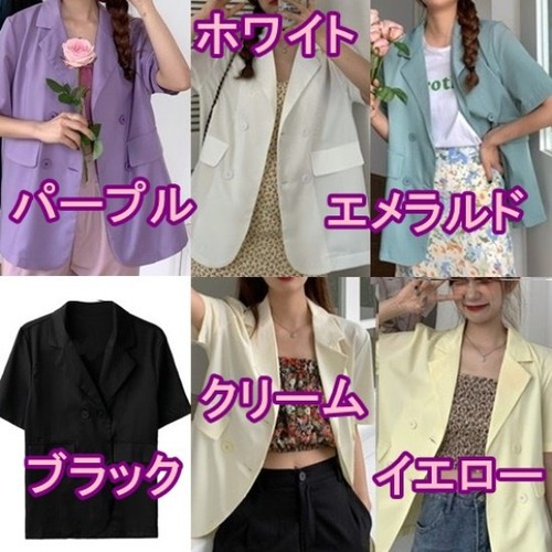 スタイリングの仕上げ♪差し色になってくれるカラーリング パステルカラーが絶妙なおしゃれアイテムです 薄手のさらっとした生地感が涼し気♪半袖ジャケット 【カラー】 パープル、ホワイト、エメラルド、ブラック、クリーム、イエロー 【素材】 合成 【サイズ】 着丈: 69 cm バスト: 102 cm 肩幅: 46 cm ※測り方によって1-2cmの誤差が生じる場合が御座います。 ※モニターの発色により実際と異なる場合があります。 qdl-234 ジャケット 半袖 カジュアル レディース 韓国 ファッション パステルカラー ダブルボタン ジャケット テーラード ダブルボタン 夏 ジャケット トップス シャツジャケット 夏秋 カラフル おしゃれ こちらの商品は海外からの【お取り寄せ商品】となります。 ご注文確定後(入金確認後)、海外よりお取り寄せさせていただきます。 お届けまで3週間前後お時間をいただいております。 数あるショップの中からご覧いただきありがとうございます。 以下のショップ注意事項をご確認いただき、ご購入をお願い致します。 ※注意事項※ ●トラブル防止の為、遠慮なくメールにてご質問下さい。 ●当店の商品は海外からのお取り寄せ商品になります。 ●カラーやイメージが違う、実寸が違う等を気にされる方のクレーム、返品、交換は一切お受けしておりません。 そのような方のご購入は予めご遠慮下さい(初期不良に関しては返品交換の対応をさせていただきます)。 ●海外製品は多少の縫製ミス、糸のほつれ、細かい不具合、多少の色の違い、イメージ違い等がごく稀にございます。 検品は徹底しておりますので、ご理解の上ご購入をお願い致します。 ●お届けまで注文確定後3週間程度となります。 ●ご注文を頂いても海外のメーカーにて完売の場合は、商品をお届けする事ができませんのでキャンセルとさせていただく場合がございます。 ●お客様の個人情報は発送以外に使用することは一切ございません。 ●ご注文確定後のお客様都合によるキャンセル、サイズ・カラーの変更はお受けすることが出来ません。
