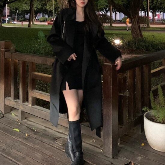 ロングコート レディース アウター 秋 大きいサイズ ベルト付き チェスターコート 大人可愛い 韓国 オルチャン ブラック ウールコート 超ロングコート