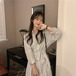 ワンピース ニットドレス レディース ガールズ カジュアル 長袖 千鳥格子 ミディ丈 ミリタリー ハイウエスト 秋冬 あたたか レトロ 襟 セーター