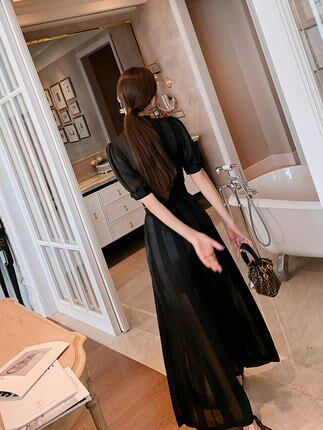 ワンピース ドレス ミドル丈 バイカラー 半袖 袖あり フレンチスリーブ ビーズ刺しゅう モノトーン 星柄 シフォン オーガンジー フレアスカート Aライン フェミニン 発表会 演奏会 大きいサイズ