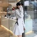 ワンピース ドレス シャツワンピース ホワイト 大きいサイズ Vネック 長袖 春 秋 ウエストマーク 細見え 着痩せ プリーツスカート お呼ばれ パーティー セレブカジュアル セクシー 可愛い