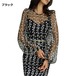 ワンピース ドレス ミドル丈 バイカラー 半袖 袖あり フレンチスリーブ ビーズ刺しゅう モノトーン 星柄 シフォン オーガンジー フレアスカート Aライン フェミニン 発表会 演奏会 大きいサイズ
