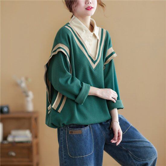 フェイクレイヤードのプルオーバー♪ シャツとVネックトレーナーの重ね着風 Aラインの裾を絞れる♪雰囲気チェンジ可能♪ 【カラー】 ブラック、グリーン 【素材】 コットン 【サイズ】 XL 着丈: 67 cm バスト: 120 cm 肩幅: 53 cm 袖丈: 52 cm 2XL 着丈: 68 cm バスト: 126 cm 肩幅: 54 cm 袖丈: 53 cm ※測り方によって1-2cmの誤差が生じる場合が御座います。 ※モニターの発色により実際と異なる場合があります。 qdl-314 プルオーバー シャツ フェイクレイヤード レディース 韓国 ファッション アンサンブル Vネック シャツ ワイドシルエット オーバーサイズ ビッグサイズ Aライン スポーツミックス 大人カジュアル こちらの商品は海外からの【お取り寄せ商品】となります。 ご注文確定後(入金確認後)、海外よりお取り寄せさせていただきます。 お届けまで3週間前後お時間をいただいております。 数あるショップの中からご覧いただきありがとうございます。 以下のショップ注意事項をご確認いただき、ご購入をお願い致します。 ※注意事項※ ●トラブル防止の為、遠慮なくメールにてご質問下さい。 ●当店の商品は海外からのお取り寄せ商品になります。 ●カラーやイメージが違う、実寸が違う等を気にされる方のクレーム、返品、交換は一切お受けしておりません。 そのような方のご購入は予めご遠慮下さい(初期不良に関しては返品交換の対応をさせていただきます)。 ●海外製品は多少の縫製ミス、糸のほつれ、細かい不具合、多少の色の違い、イメージ違い等がごく稀にございます。 検品は徹底しておりますので、ご理解の上ご購入をお願い致します。 ●お届けまで注文確定後3週間程度となります。 ●ご注文を頂いても海外のメーカーにて完売の場合は、商品をお届けする事ができませんのでキャンセルとさせていただく場合がございます。 ●お客様の個人情報は発送以外に使用することは一切ございません。 ●ご注文確定後のお客様都合によるキャンセル、サイズ・カラーの変更はお受けすることが出来ません。