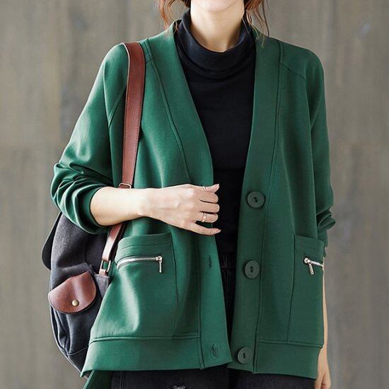 コットンのスウェット風生地で着心地バツグン♪ 秋冬コーデに欠かせない♪Vネックカーディガン ジッパーがポイントのポケット付き♪ゆったりワイドサイズ 【カラー】 グリーン、ブラック 【素材】 コットン 【サイズ】 M 着丈: 64 cm 袖丈: 63 cm バスト: 128 cm L 着丈: 65 cm 袖丈: 64 cm バスト: 132 cm XL 着丈: 66 cm 袖丈: 65 cm バスト: 136 cm ※測り方によって1-2cmの誤差が生じる場合が御座います。 ※モニターの発色により実際と異なる場合があります。 qdl-330 カーディガン レディース 韓国 ファッション Vネック コットン 秋冬トップス ジャケット ジップポケット 大人カジュアル かわいい ナチュラル カーディガン 秋冬アイテム トレーナー スウェット こちらの商品は海外からの【お取り寄せ商品】となります。 ご注文確定後(入金確認後)、海外よりお取り寄せさせていただきます。 お届けまで3週間前後お時間をいただいております。 数あるショップの中からご覧いただきありがとうございます。 以下のショップ注意事項をご確認いただき、ご購入をお願い致します。 ※注意事項※ ●トラブル防止の為、遠慮なくメールにてご質問下さい。 ●当店の商品は海外からのお取り寄せ商品になります。 ●カラーやイメージが違う、実寸が違う等を気にされる方のクレーム、返品、交換は一切お受けしておりません。 そのような方のご購入は予めご遠慮下さい(初期不良に関しては返品交換の対応をさせていただきます)。 ●海外製品は多少の縫製ミス、糸のほつれ、細かい不具合、多少の色の違い、イメージ違い等がごく稀にございます。 検品は徹底しておりますので、ご理解の上ご購入をお願い致します。 ●お届けまで注文確定後3週間程度となります。 ●ご注文を頂いても海外のメーカーにて完売の場合は、商品をお届けする事ができませんのでキャンセルとさせていただく場合がございます。 ●お客様の個人情報は発送以外に使用することは一切ございません。 ●ご注文確定後のお客様都合によるキャンセル、サイズ・カラーの変更はお受けすることが出来ません.