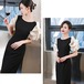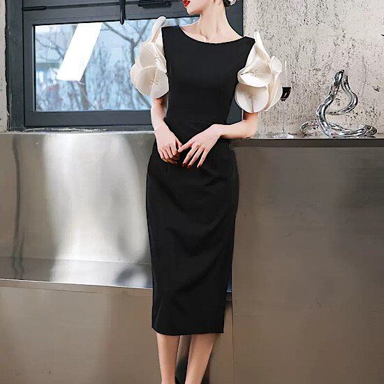 ワンピース ドレス ミドル丈 バイカラー 半袖 袖あり フレンチスリーブ ビーズ刺しゅう モノトーン 星柄 シフォン オーガンジー フレアスカート Aライン フェミニン 発表会 演奏会 大きいサイズ