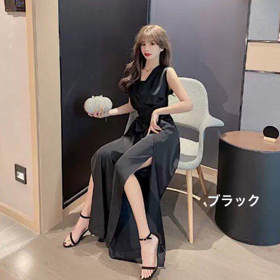 パンツドレス レディース ジャンプスーツ オールインワン ホルターネック ワイドパンツ ノースリーブ ハイウエスト 黒 ブラック きれいめ エレガント スタイリッシュ お呼ばれ フォーマル 披露宴